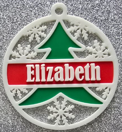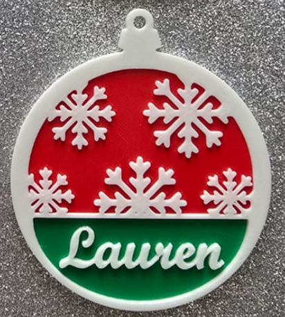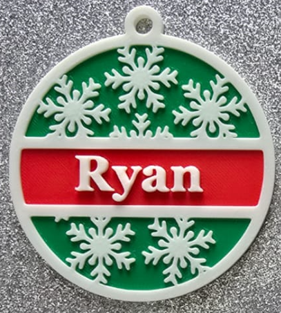 Descriere: Ornament 3D cu design contrastant roșu-verde și fulgi de nea, personalizabil cu orice nume. Potrivit pentru cadouri sau decorațiuni.