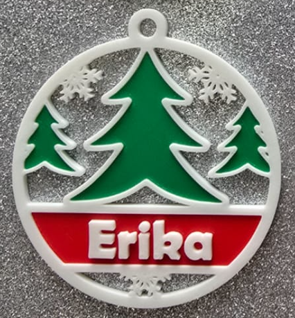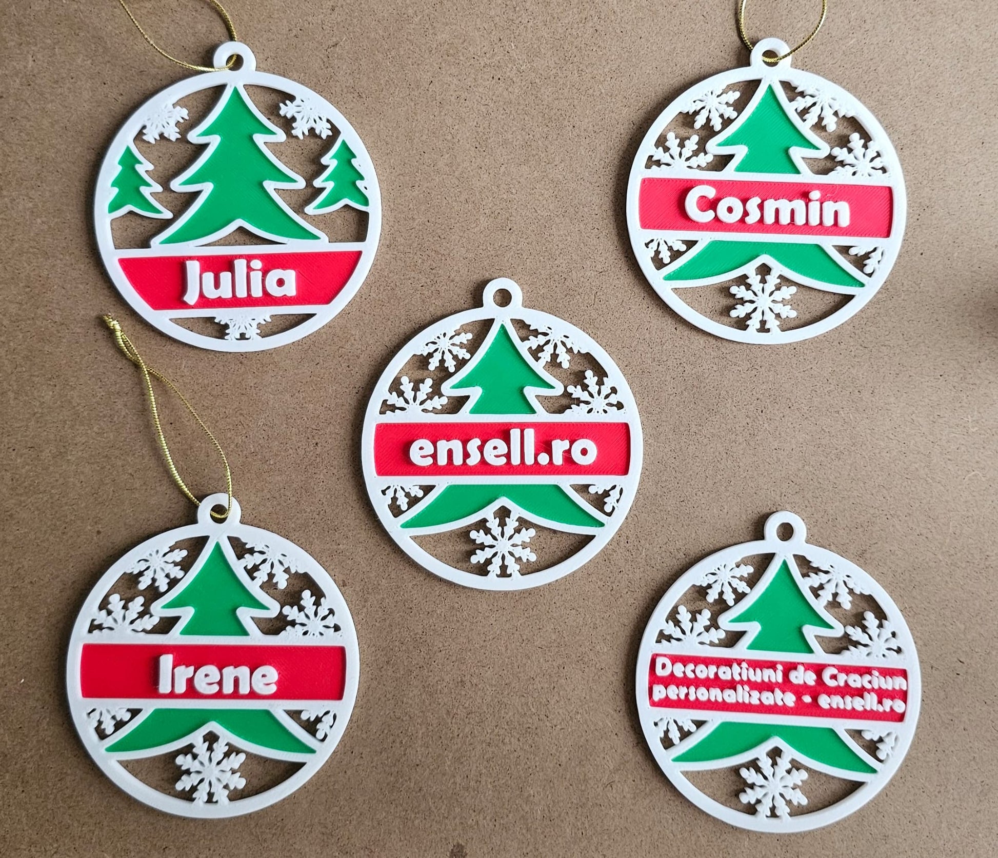 Descriere: Ornament 3D elegant, cu brăduț și fulgi de nea, personalizat cu numele ales. Perfect pentru o atmosferă festivă autentică.