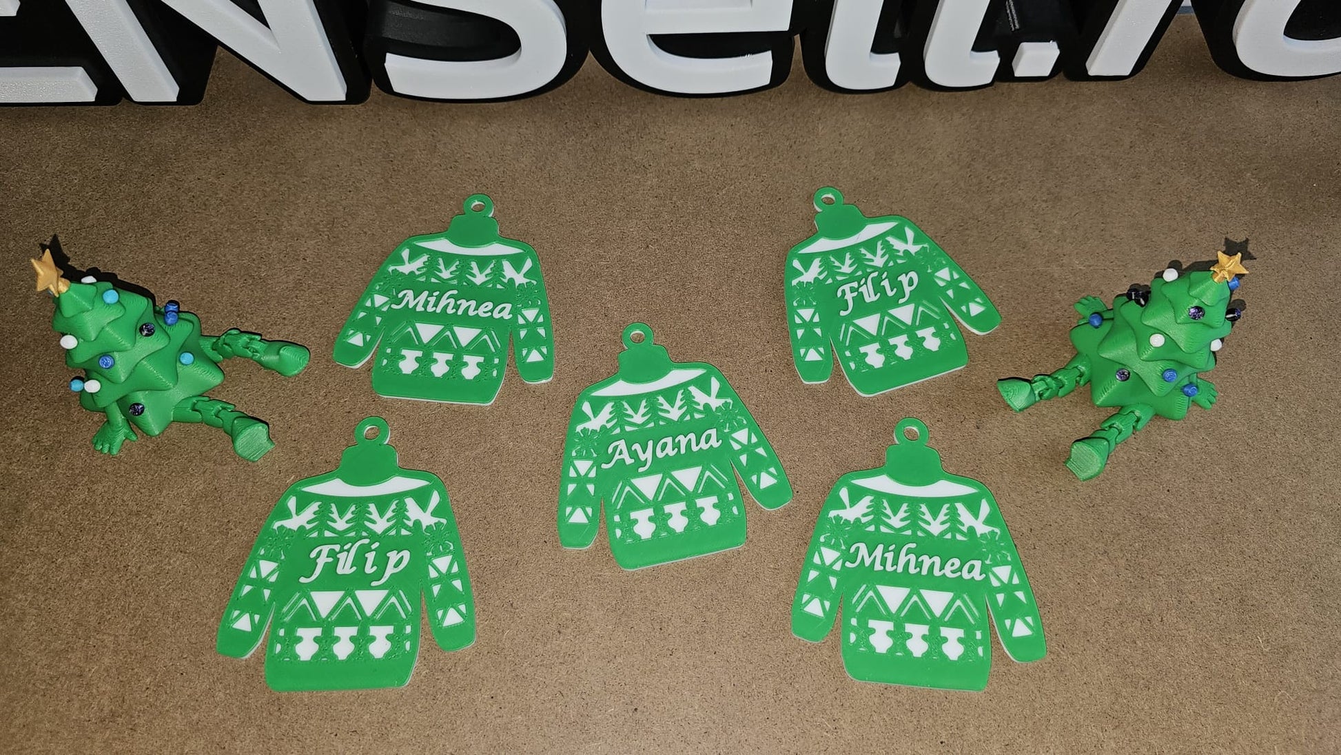 Adaugă o notă personală și călduroasă bradului tău de Crăciun cu aceste ornamente unice! Fiecare pulover este gravat cu un nume special, transformând un simplu decor într-o amintire prețioasă.